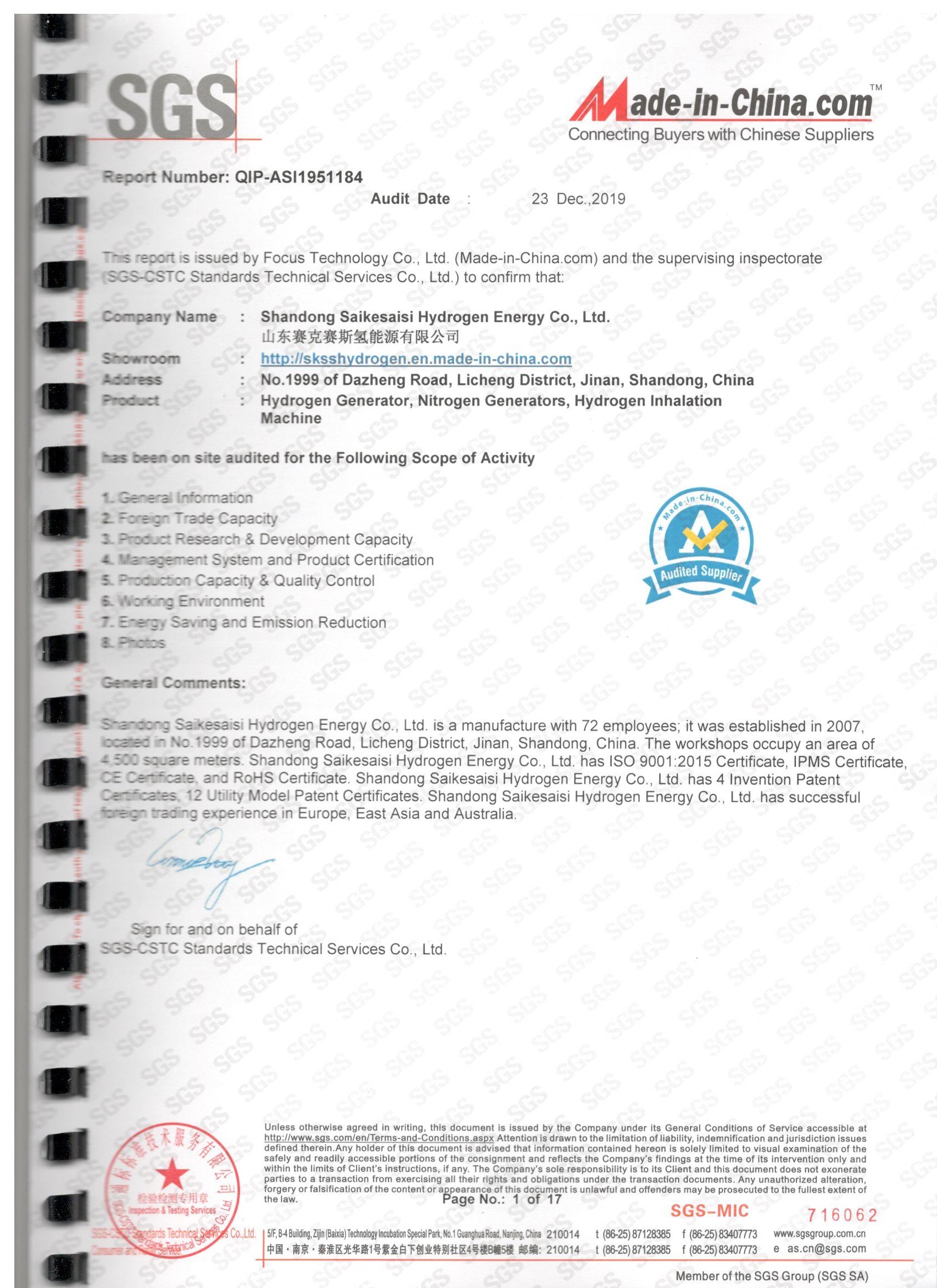 SGS工廠實(shí)地認(rèn)證書(shū)