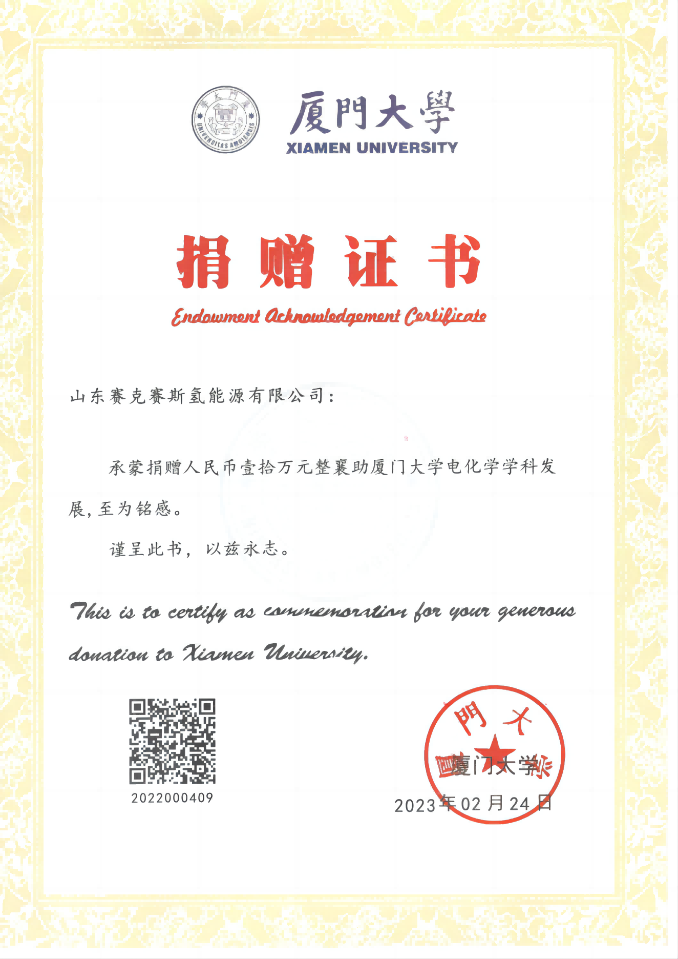 廈門大學(xué)捐贈(zèng)證書(shū)